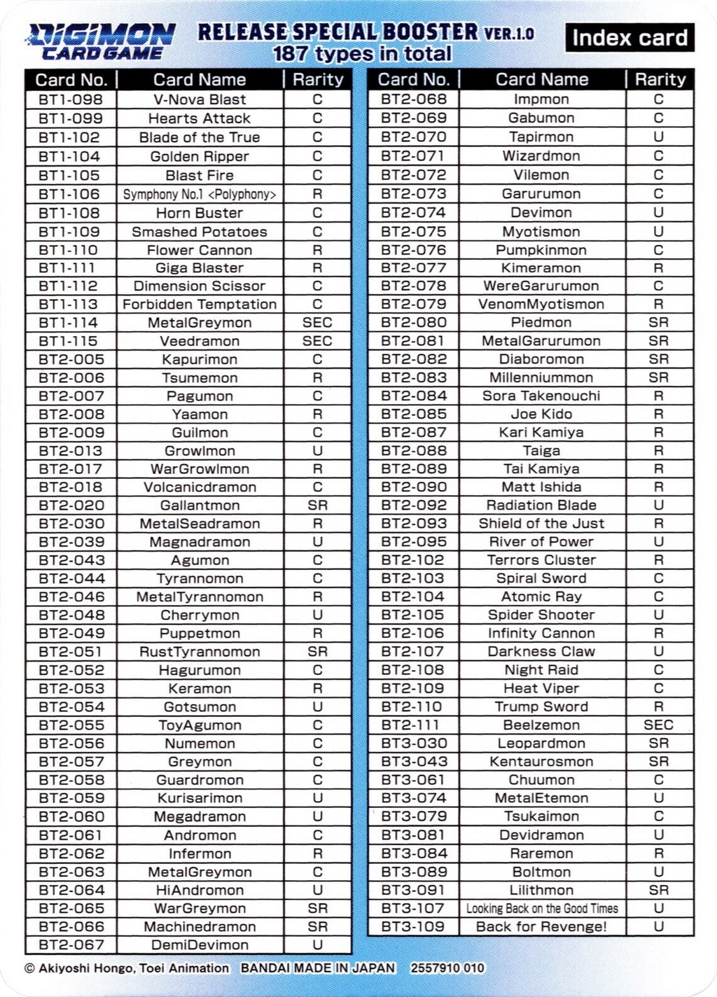 Release Special Booster Ver.1.0 Index Card (Player 2) [Release Special Booster Ver.1.0]